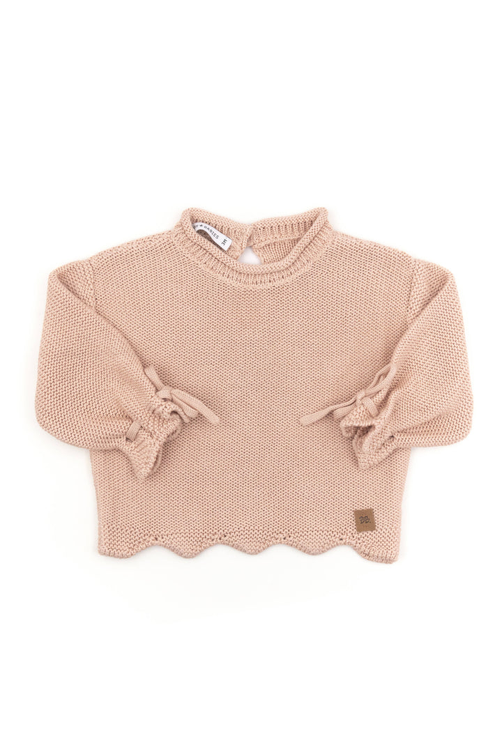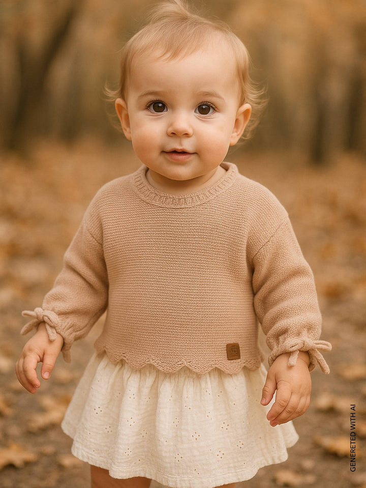 Un capo in maglia pensato per unire stile e praticità, perfetto per l'autunno e l'inverno. La maglia cropped da bambina si distingue per la sua linea corta e moderna, arricchita da dettagli raffinati come l'orlo smerlato e i fiocchetti decorativi sulle maniche. Un tocco di eleganza in formato mini.